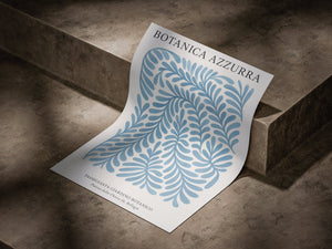 Inspired by serene Mediterranean tones, Botanica Azzurra features a flowing arrangement of botanical shapes rendered in soft blue hues. The delicate pattern brings a sense of calm, balance, and natural elegance to any space.