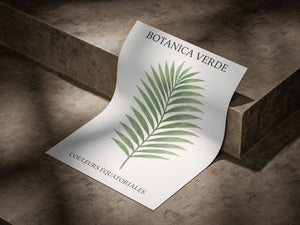 Botanica Verde celebrates the freshness and simplicity of nature through a clean, elegant illustration of verdant palm leaves. The soft green tones and minimalist composition bring a refreshing, calming presence to any interior.