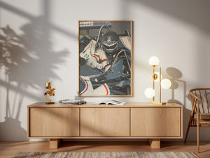 With its vintage-inspired tones and graphic composition, it captures the adrenaline and elegance of racing culture making it ideal for contemporary interiors, offices, and studios.