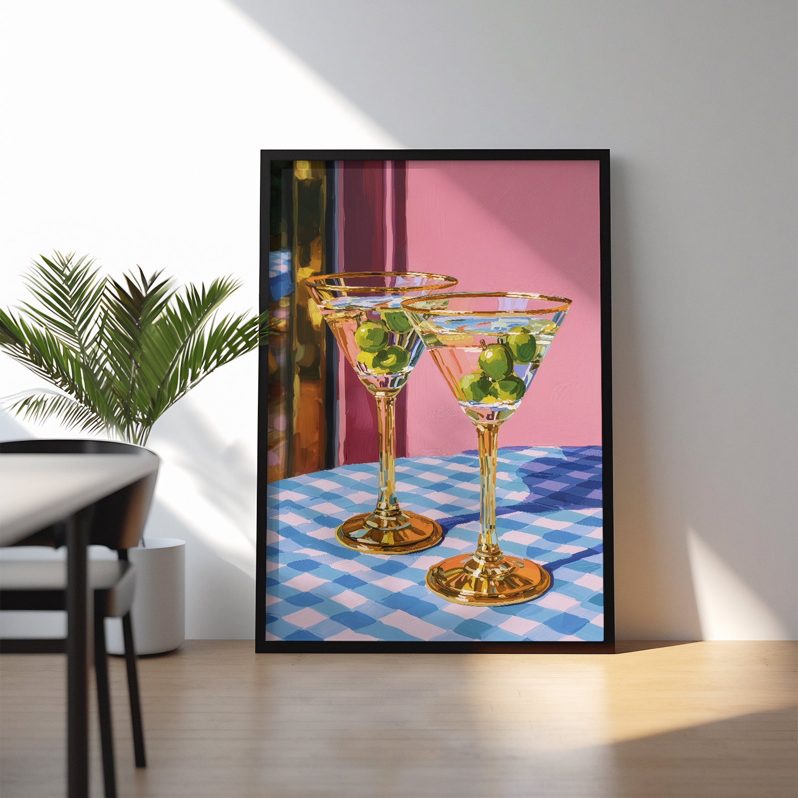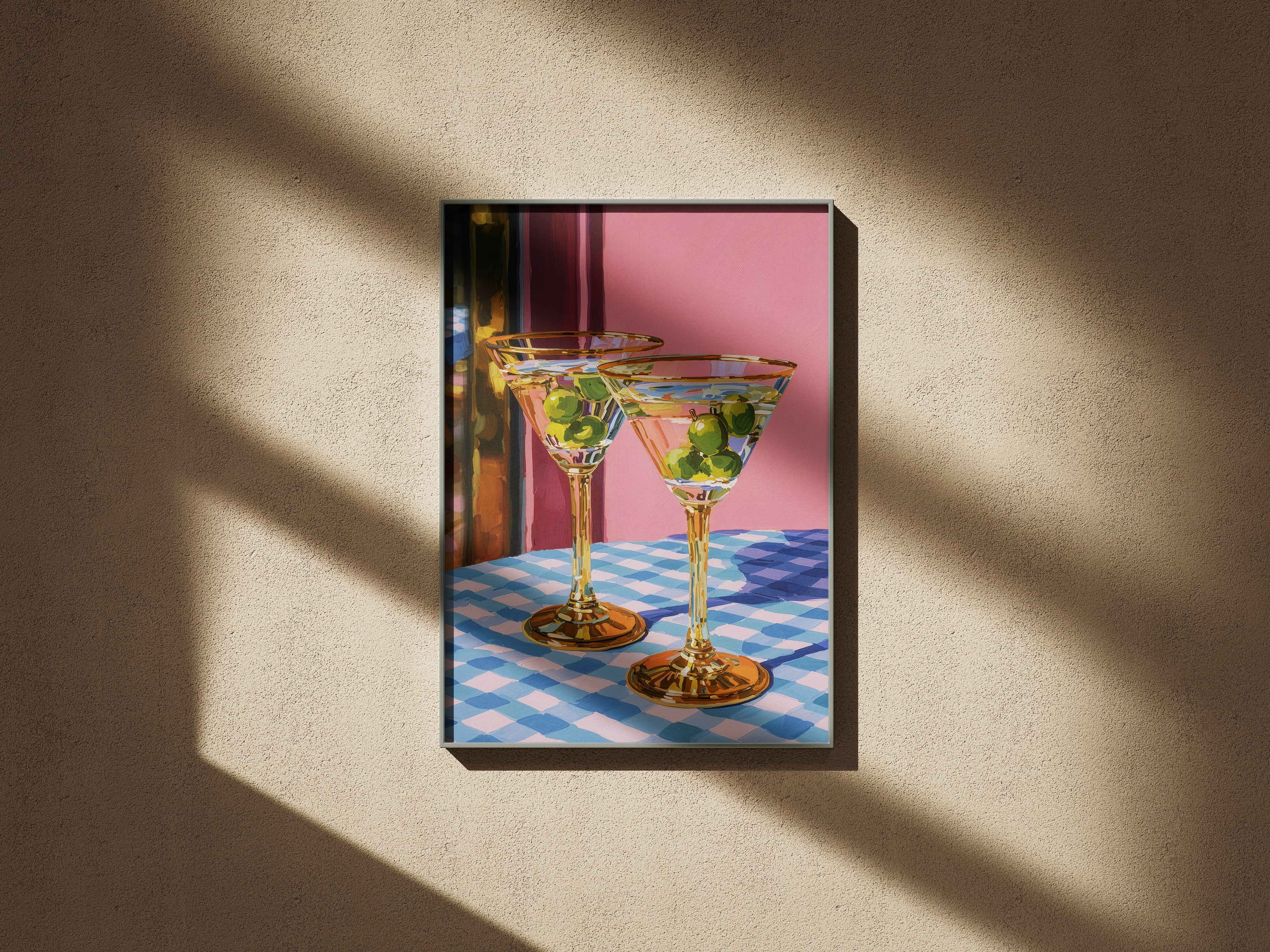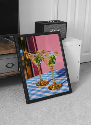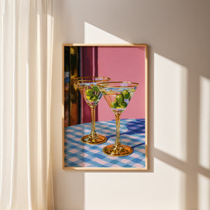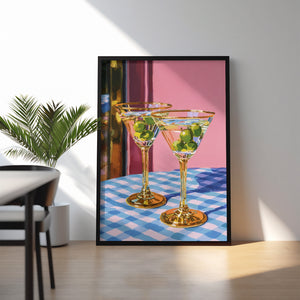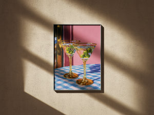 Set on a checkered table, the glasses stand patiently, filled but untouched. The room holds a soft silence, suggesting a shared moment about to unfold an unspoken toast to stories, memories, and the simple pleasure of being there together.
