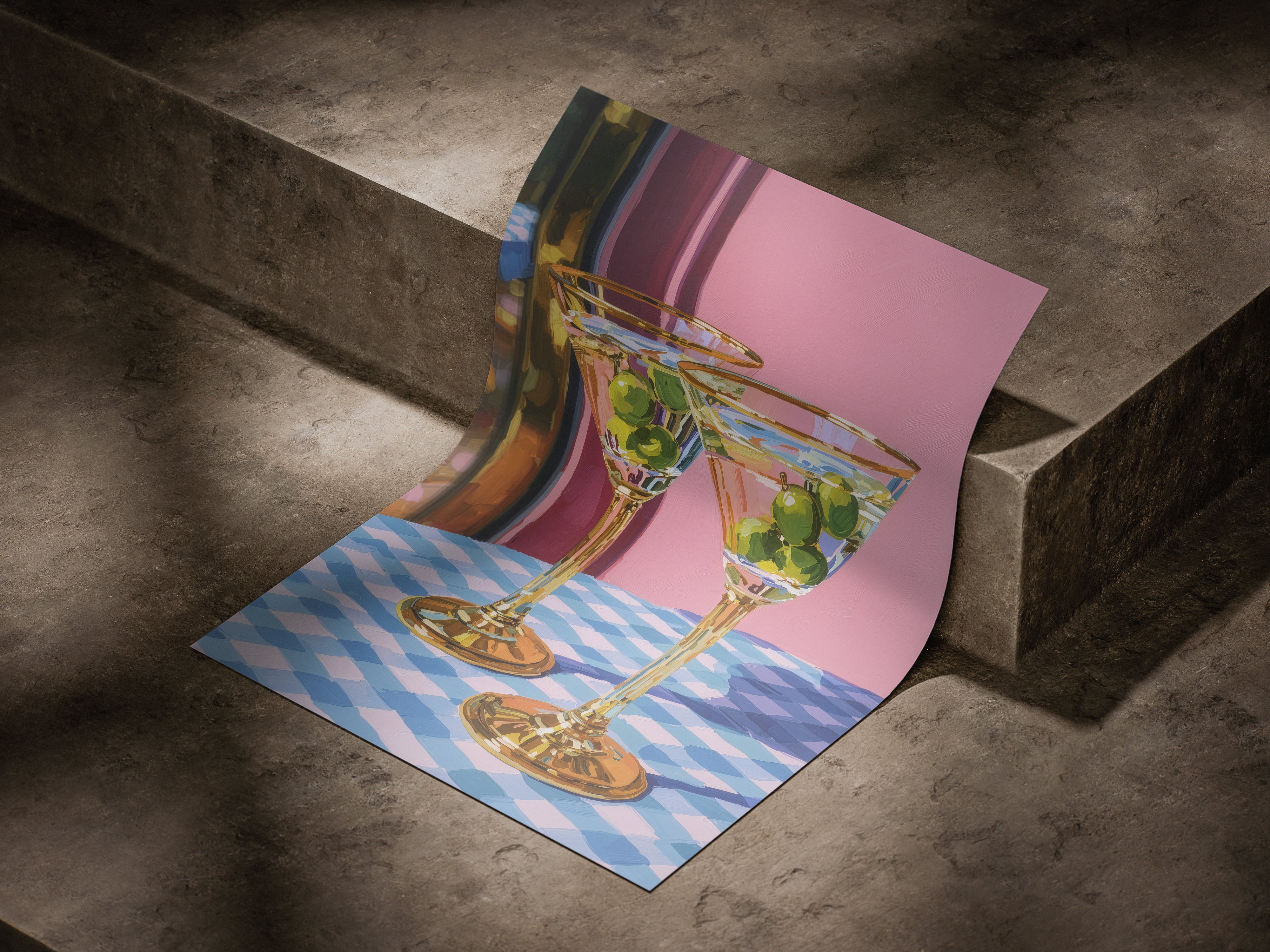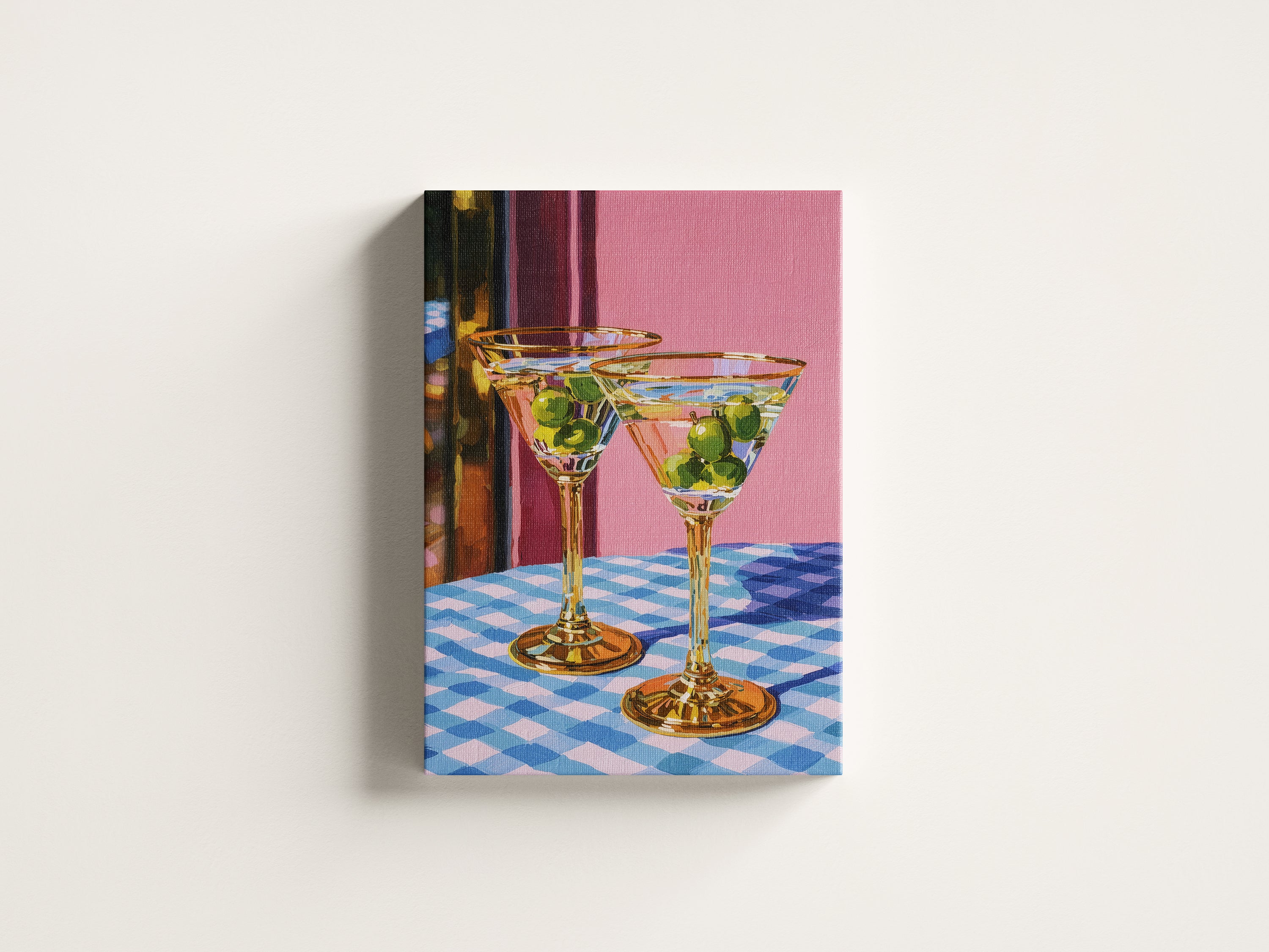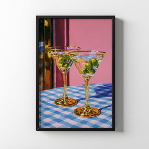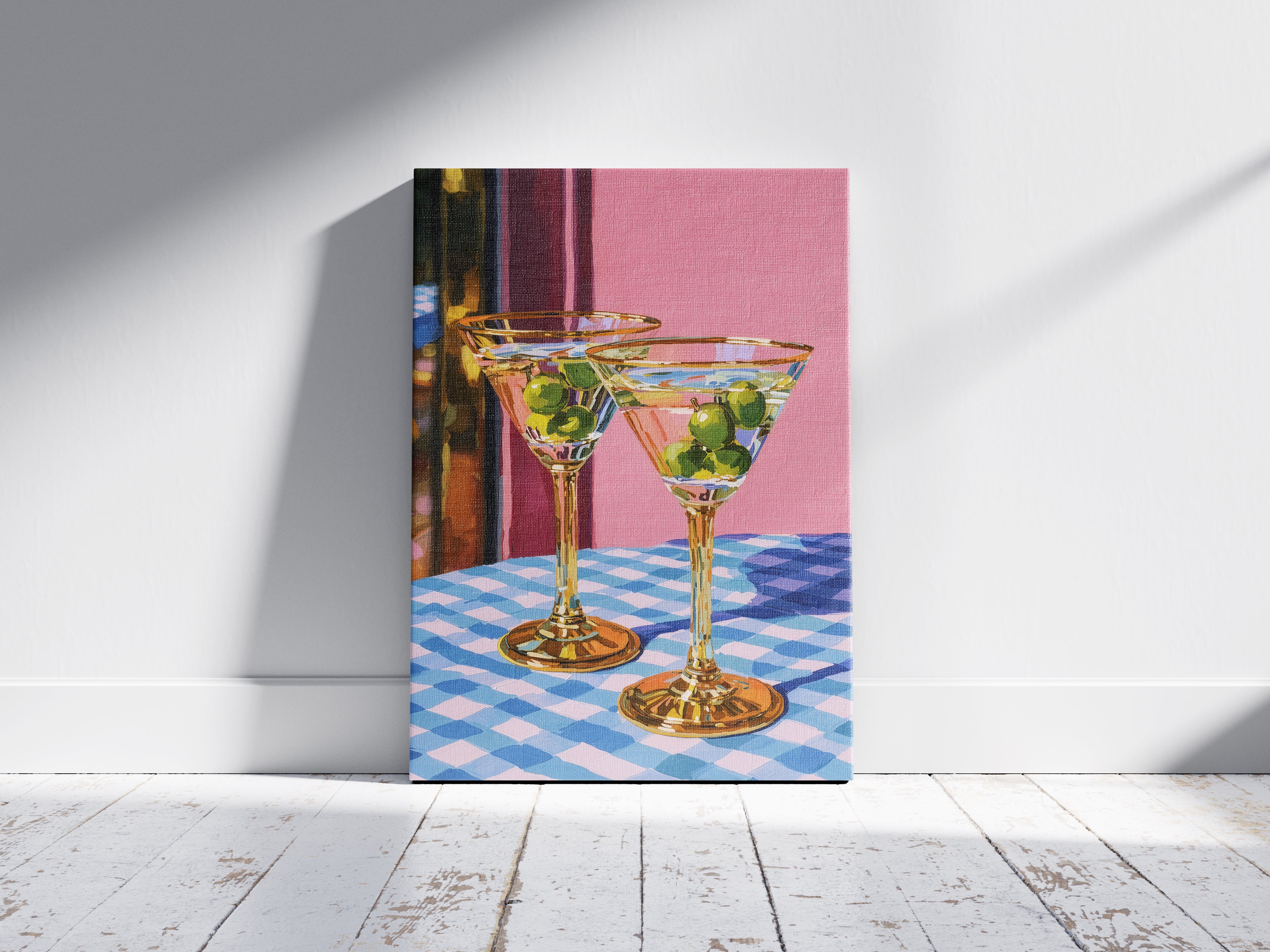 Set on a checkered table, the glasses stand patiently, filled but untouched. The room holds a soft silence, suggesting a shared moment about to unfold an unspoken toast to stories, memories, and the simple pleasure of being there together.