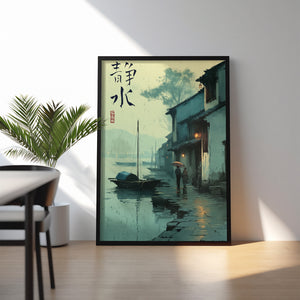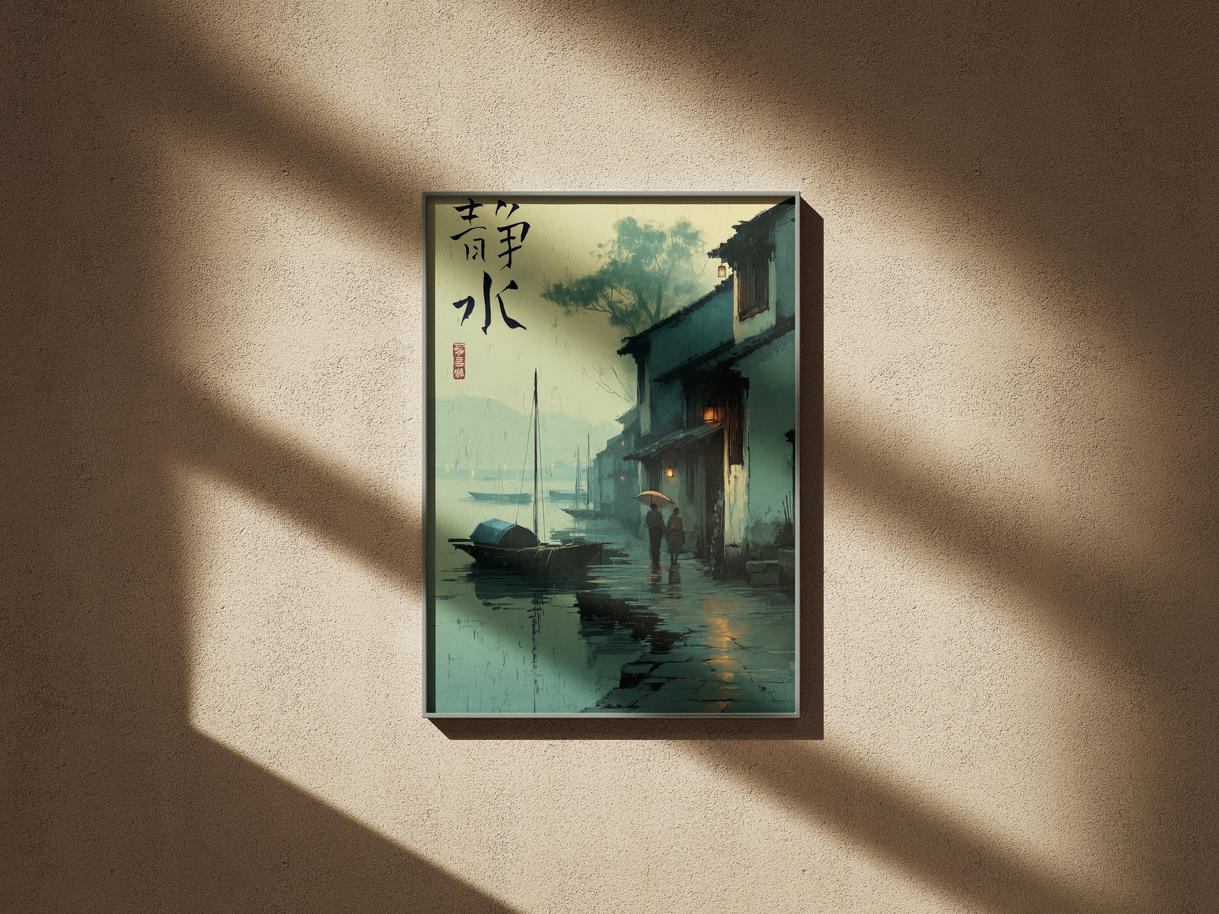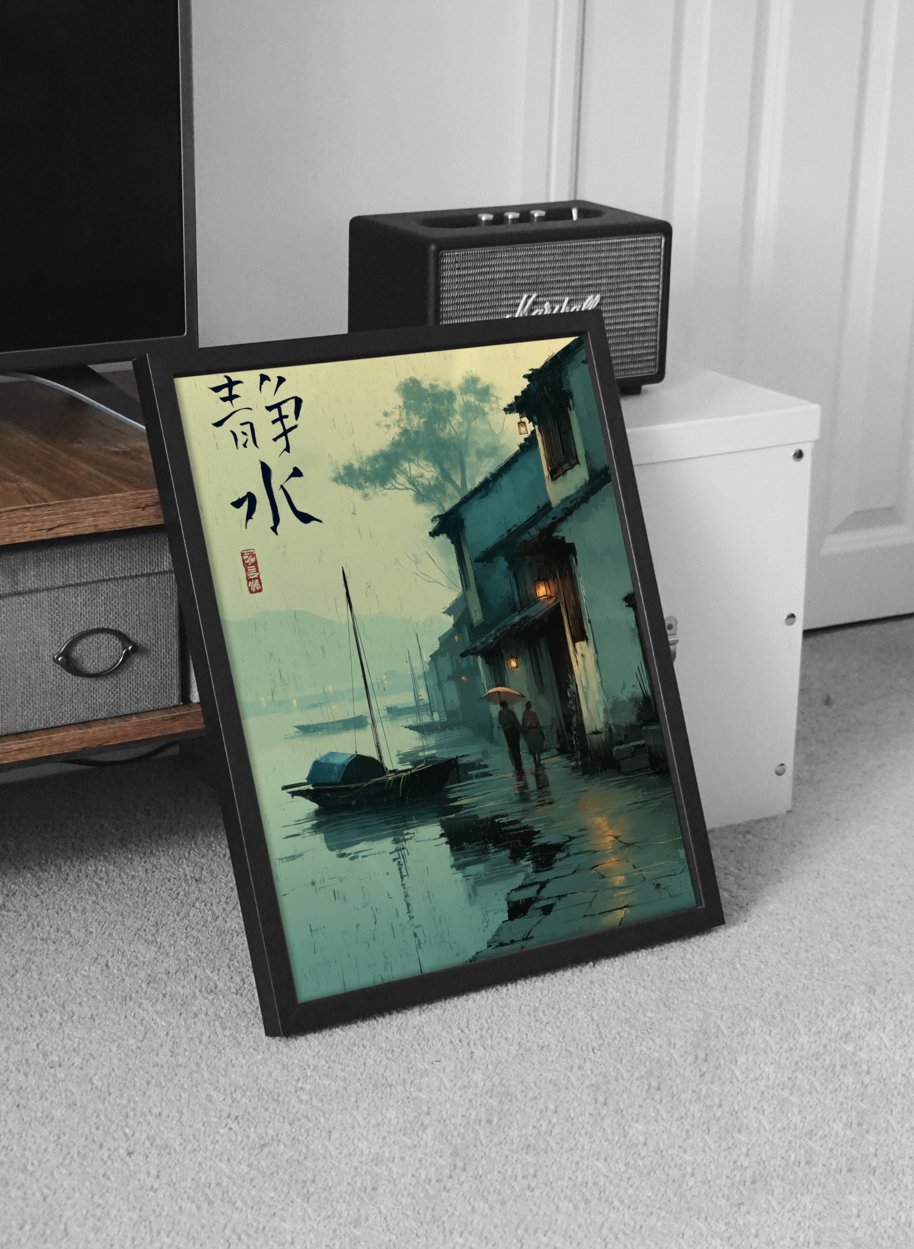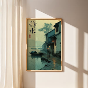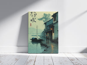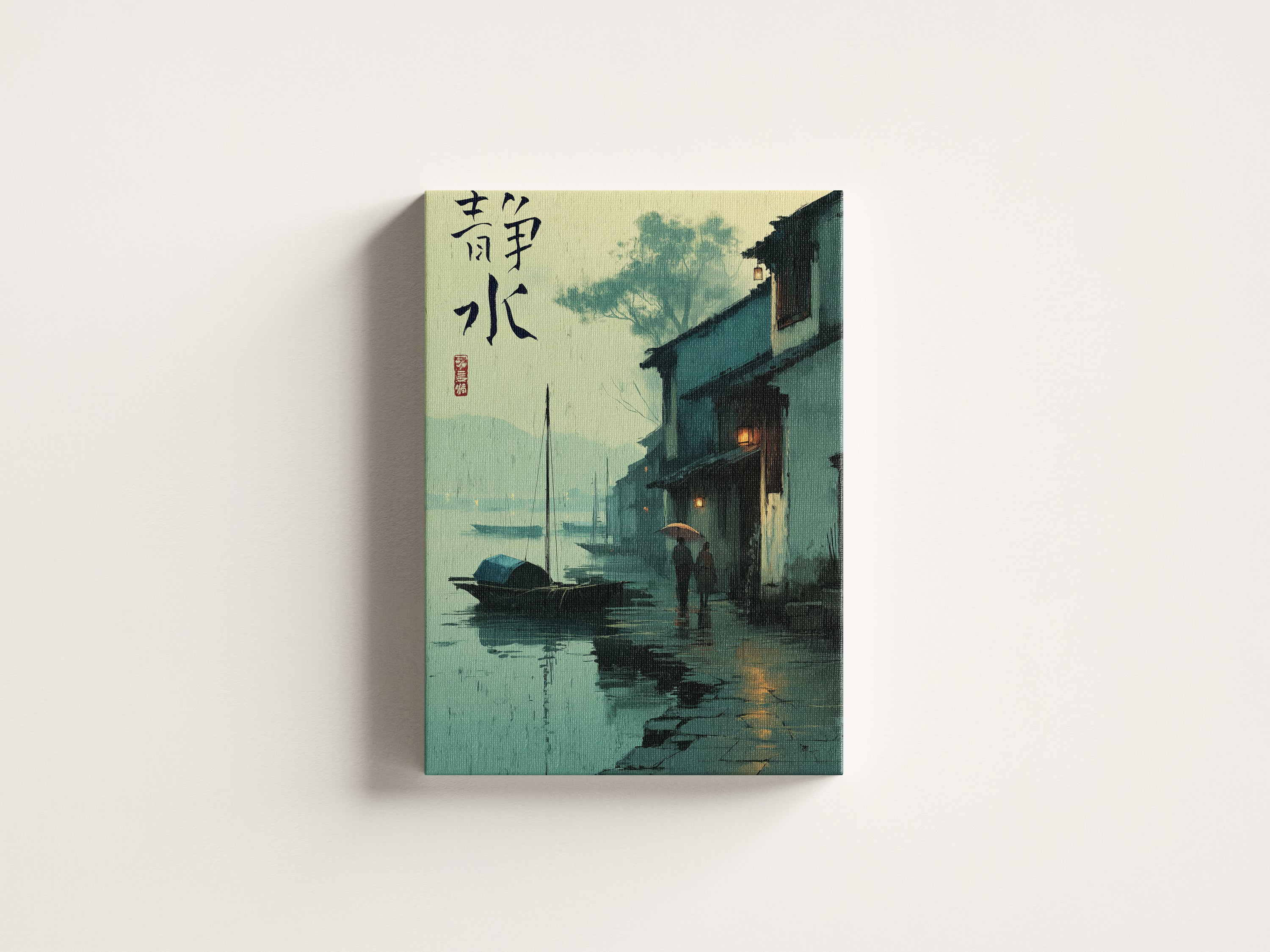 In the hush of falling rain, the town exhales. Lantern light trembles on the water as footsteps echo softly along the stone path. Boats wait without urgency, as if time itself has chosen to linger holding a moment where memory, mist, and home quietly meet.