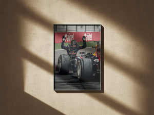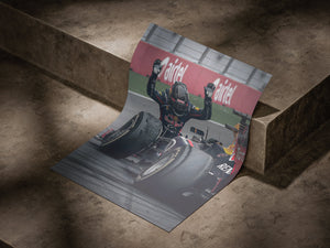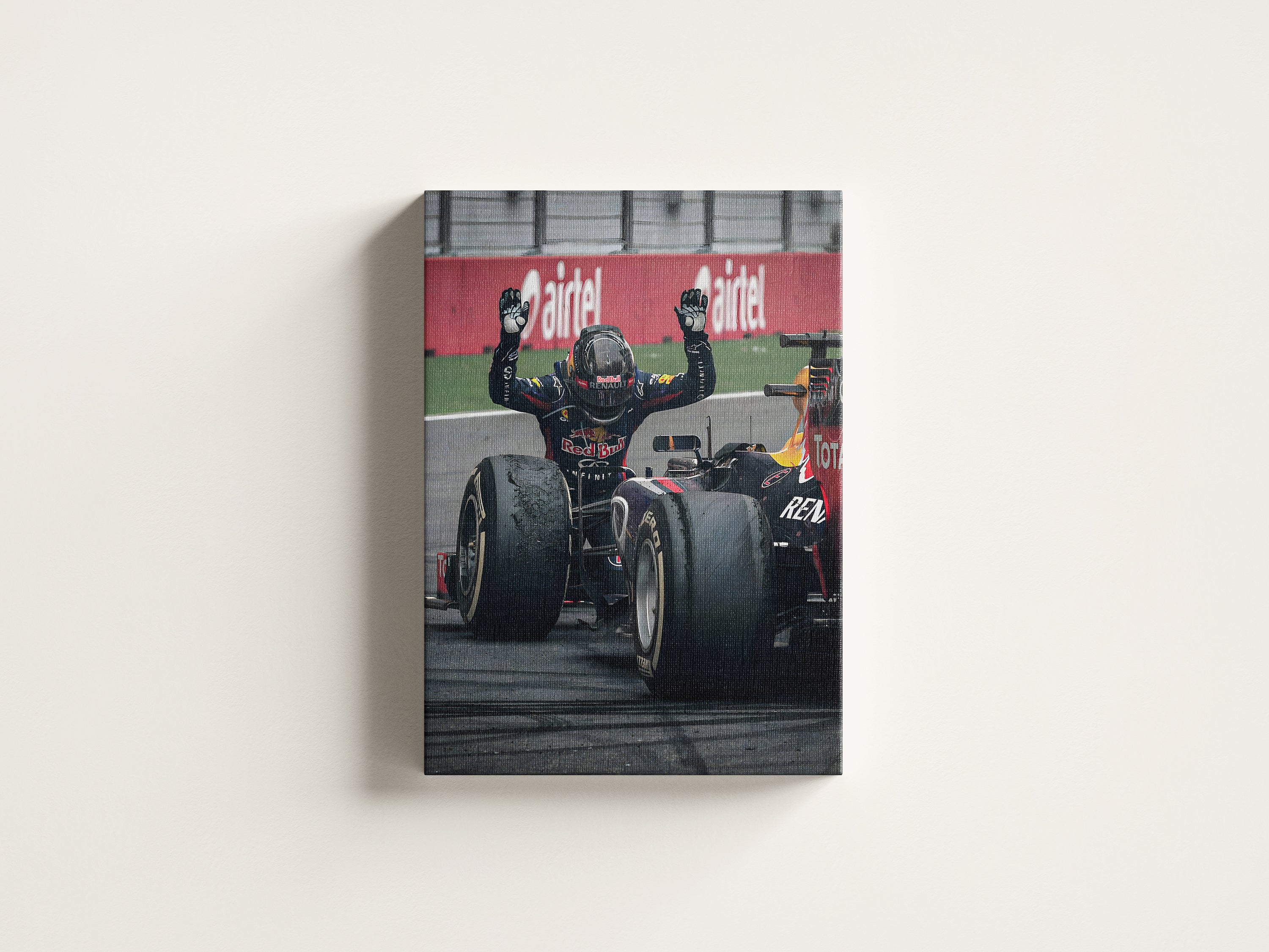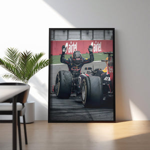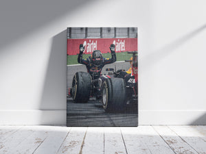 Bring the energy of Formula 1 to your walls with this bold Red Bull Racing artwork. Featuring a close-up of the driver in full race gear, layered over striking red typography, this design perfectly blends motion, power, and modern aesthetics.