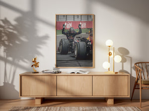 With its vintage-inspired tones and graphic composition, it captures the adrenaline and elegance of racing culture making it ideal for contemporary interiors, offices, and studios