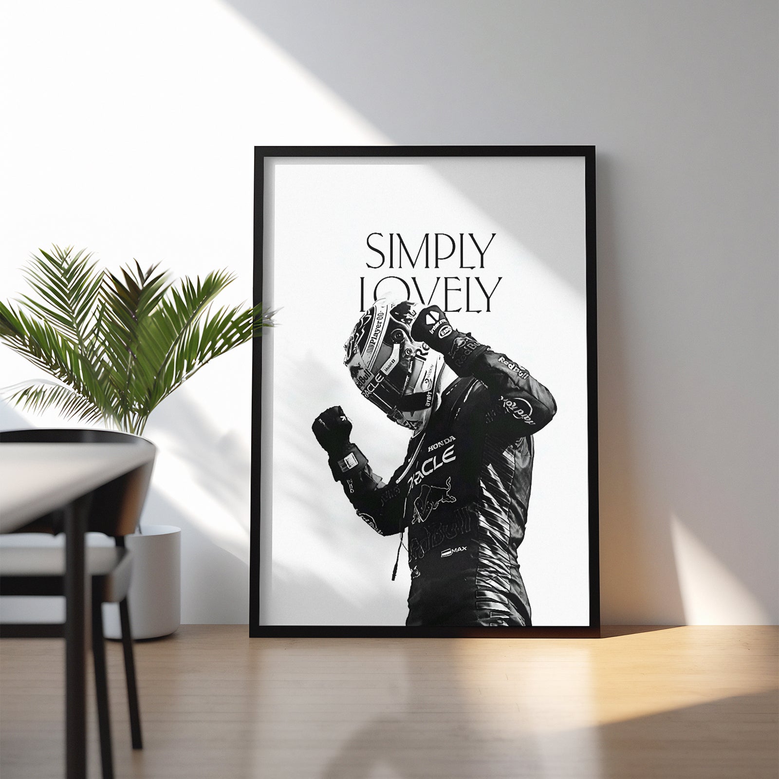 Bring the energy of Formula 1 to your walls with this bold Red Bull Racing artwork. Featuring a close-up of the driver in full race gear, layered over striking red typography, this design perfectly blends motion, power, and modern aesthetics.