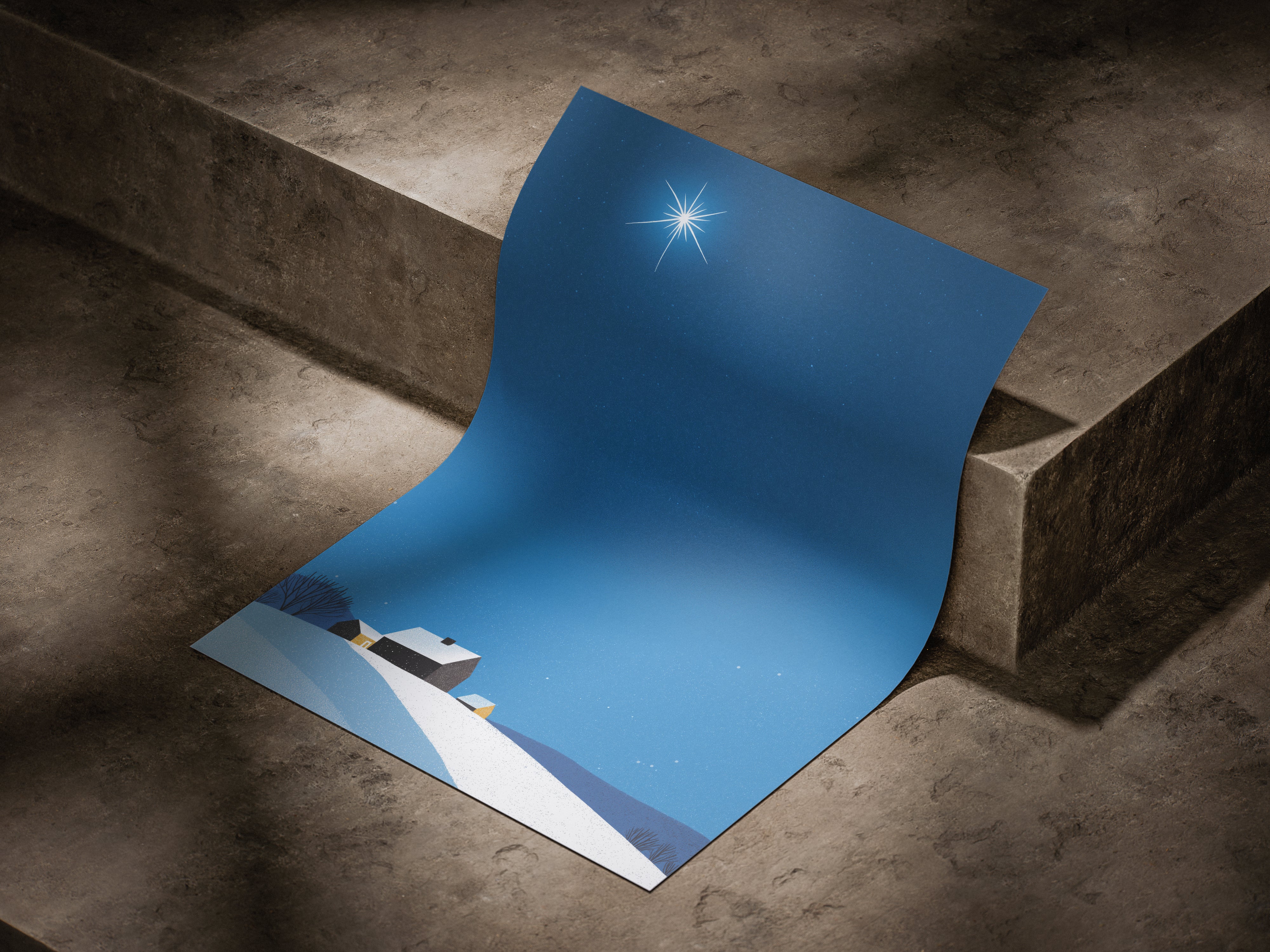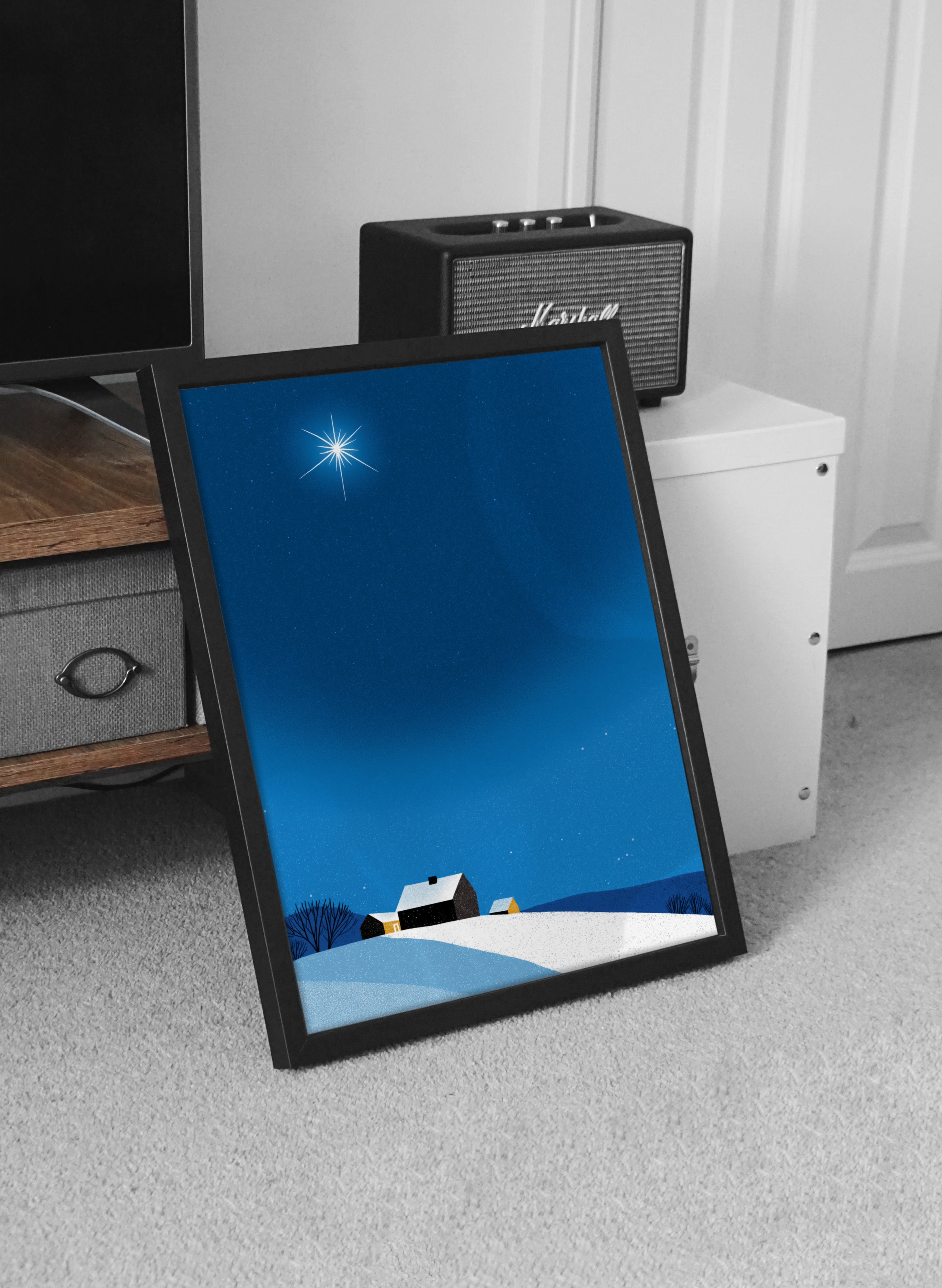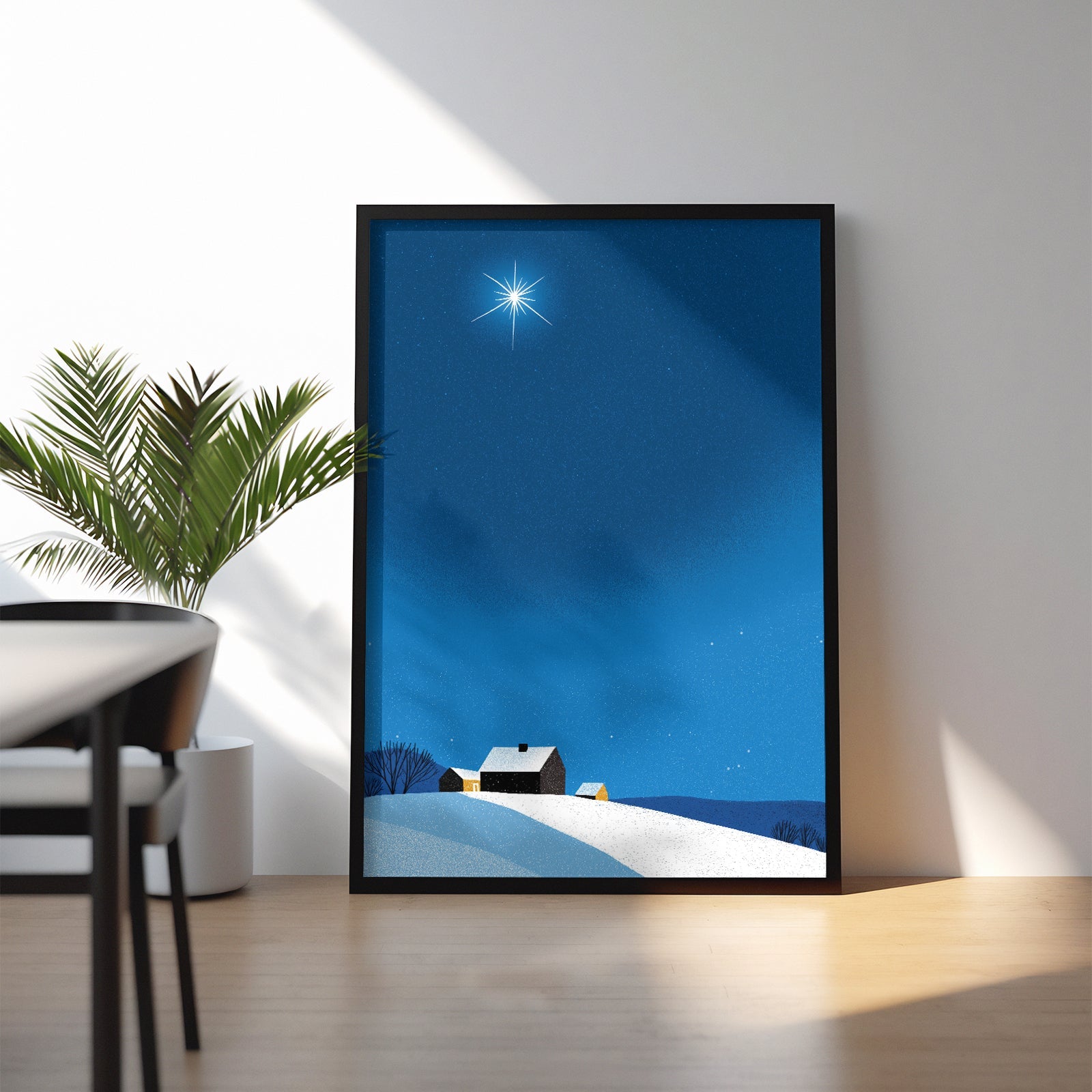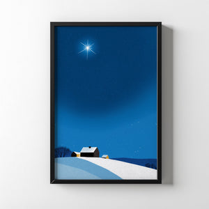 Beneath a vast winter sky, a single star holds the night in balance. Snow-covered hills soften the land, while a lone cottage rests in silence, warmed by a faint inner glow. Nothing moves, yet everything feels present. The Quiet Star is a meditation on stillness and hope a moment where light does not dominate the darkness, but gently coexists with it, guiding without sound.