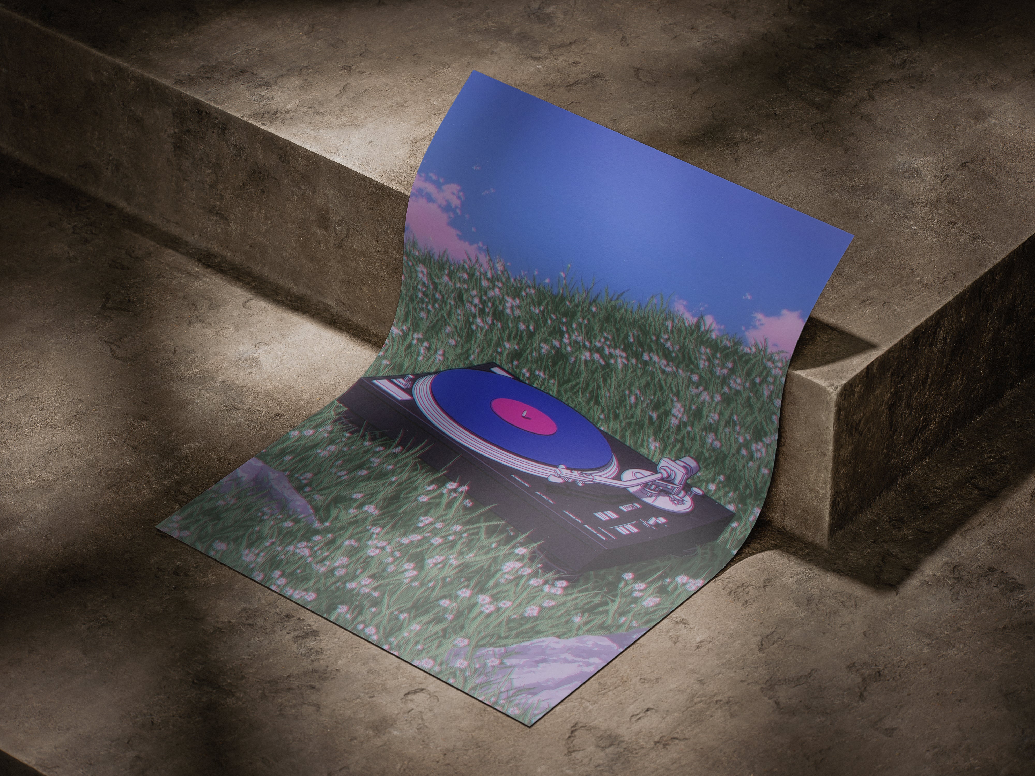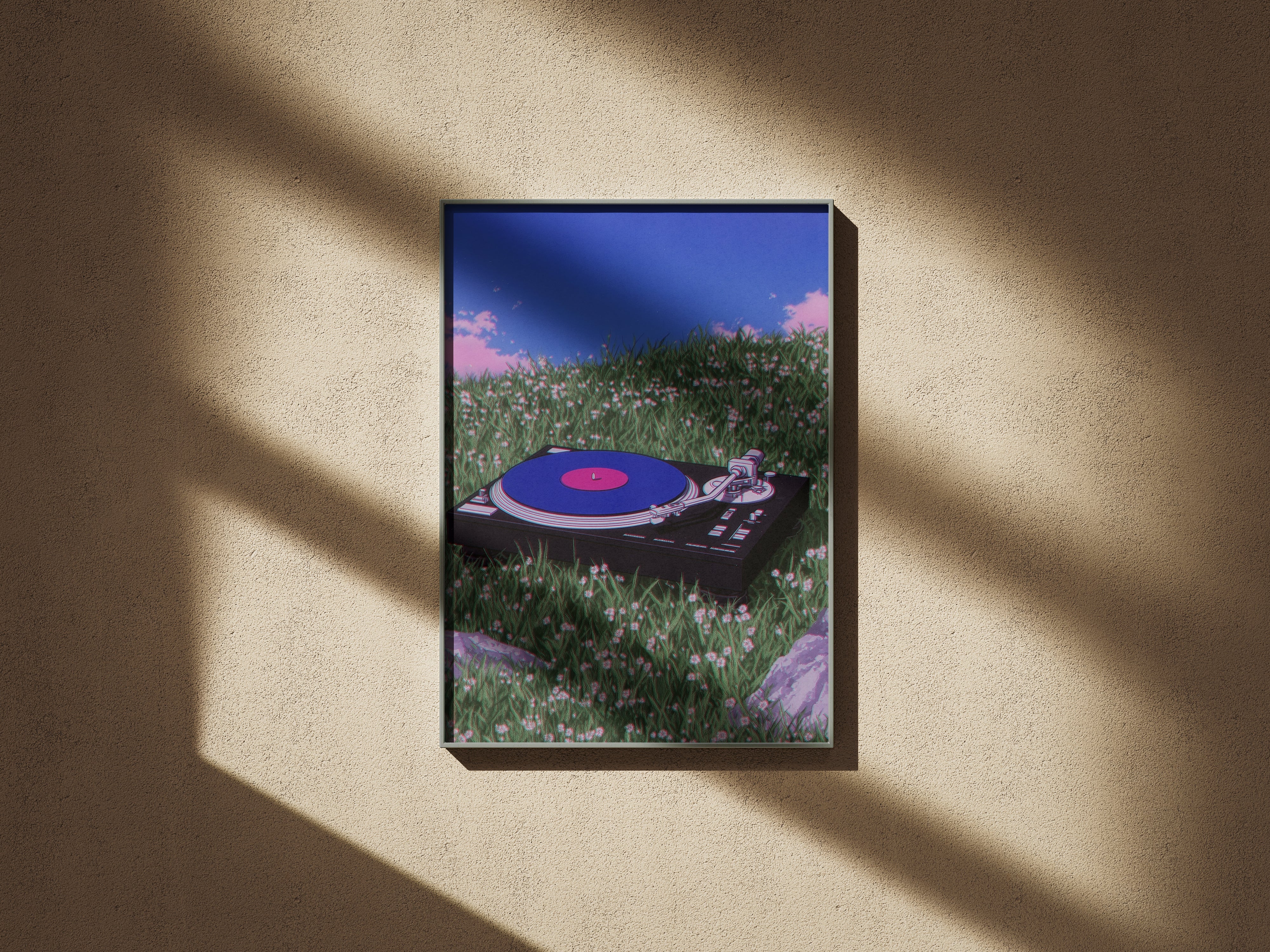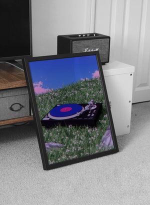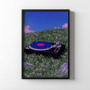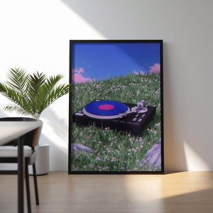 Set in a quiet field beneath an endless blue sky, Where the Music Rests captures a moment where sound becomes stillness. A vinyl turntable lies gently in the grass, as if nature itself paused to listen. This artwork blends nostalgia with serenity, evoking the warmth of analog sound and the calm of open landscapes. It’s a tribute to slow moments, soft melodies, and the beauty of letting music breathe beyond walls.
