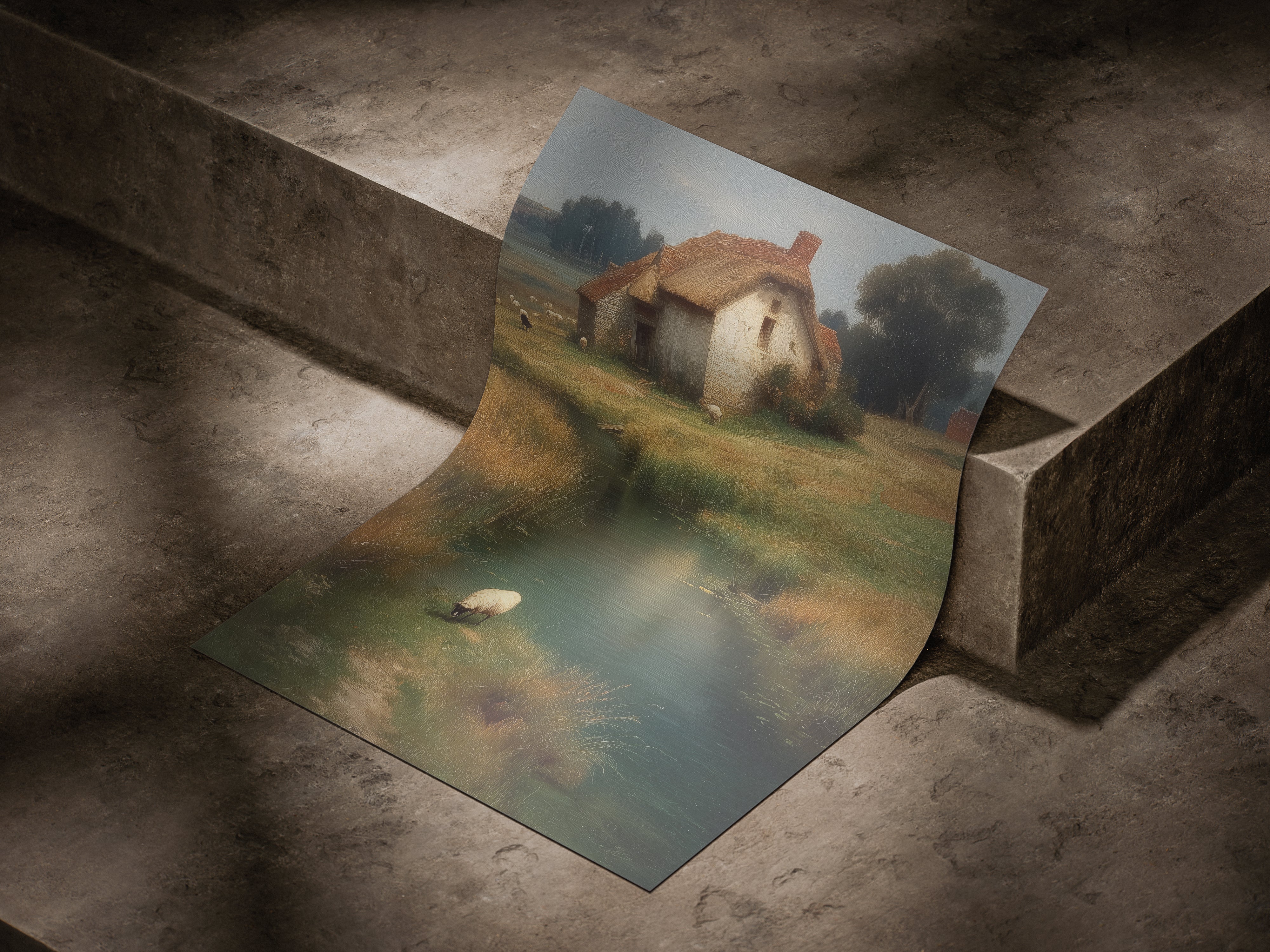 This artwork blends soft light, warm tones, and nostalgic realism to create a serene, story-like moment frozen in time. Perfect for adding a calming, rustic elegance to any interior space.