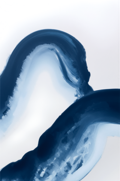 Japandi sanatından ilham alan bu eser, sakin ve akıcı indigo fırça darbeleriyle, suyun doğal yolunu bulması gibi, açık alanda nazikçe hareket ediyor. Kompozisyon, boşluğun biçim kadar anlamlı olduğu bir dengeyle yumuşaklığı ve gücü bir araya getiriyor. Işık ve sadelikle bezenmiş eser, uyumu, ölçülülüğü ve kusurlu akışın güzelliğini kucaklayarak, sessiz bir tefekküre davet ediyor.